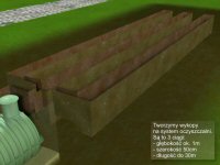 Gdy mamy wykonane wszystkie wykopy osadzamy najpierw osadnik gnilny, podłączamy rurę dopływową. Za osadnikiem w odległości 2 - 10 m powina znaleźć się studzienka rozdzielcza z której wychodzą trzy ciągi drenarskie o odpowidniej długości (w zależności od wielkości osadnika) zakończone wywietrznikami mającymi na celu dostarczanie powietrza dla złoża filtracyjnego. |