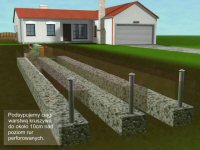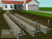 Ciągi rur drenarskich obypane są ok 50cm warstwą odpowiedniego kamienia lub tłucznia, na wierzch warstwy filtracyjnej rozciągana jest geowłóknina chroniąca drenaż przed zamuleniem. Całość przysypana jest ziemią do powierzchni terenu. |