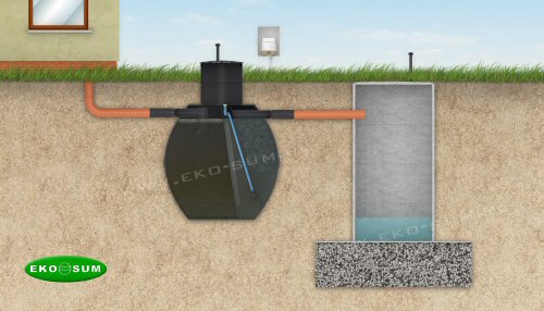 Odprowadzenie do tuneli chłonnych z wykorzystaniem przepompowni również jako zbiornik magazynowy z którego oczyszczoną wodę można wykorzystywać do podlewania